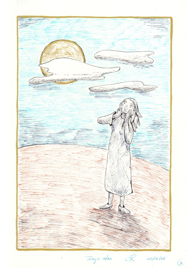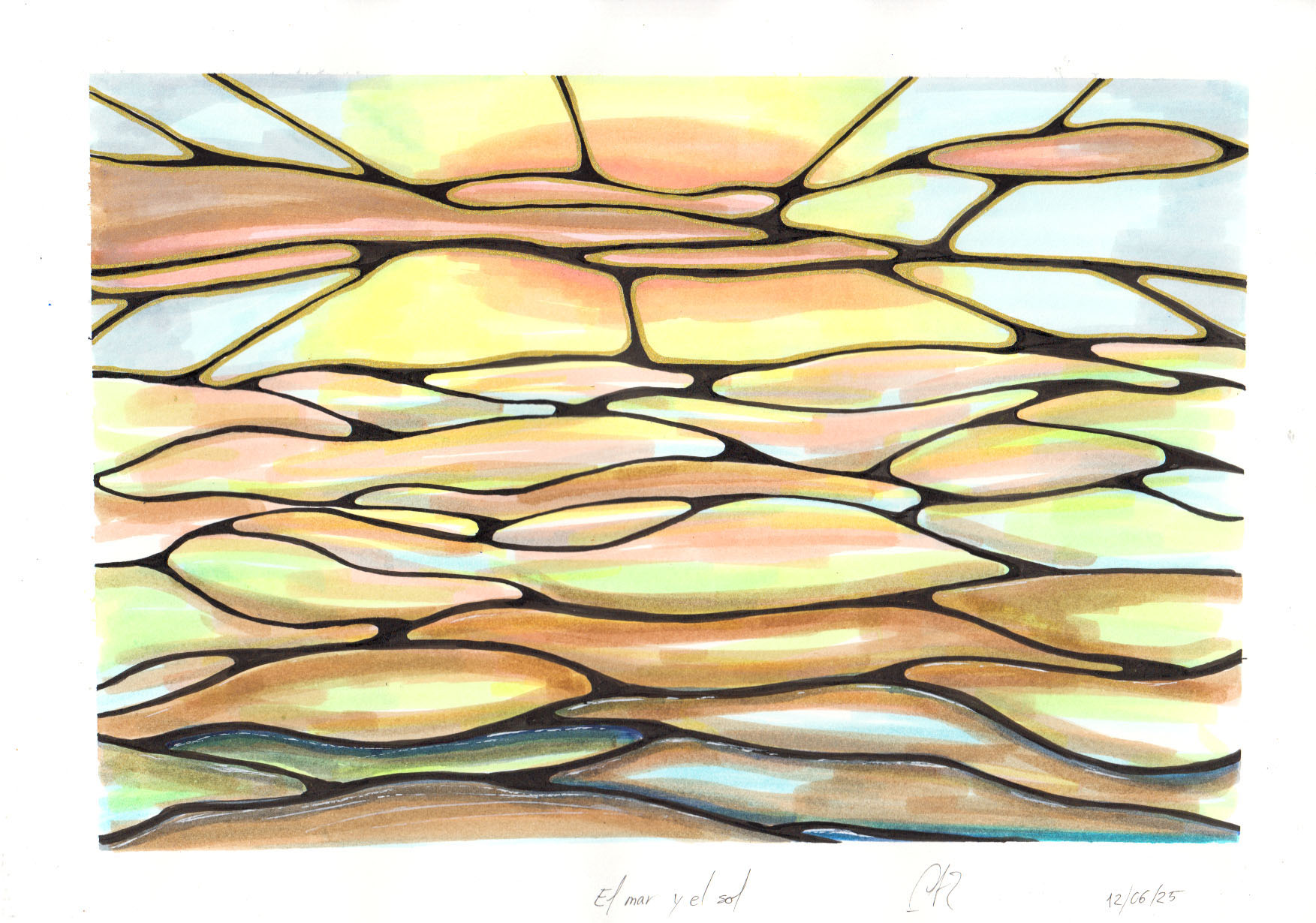 El año pasado (2024), a principios del mes de julio, comenzaron mis dudas sobre si realmente me divertía mientras hacía lo que hacía, y en este caso me refiero al dibujo en general. No era un pensamiento que me llegara de una forma clara y precisa, sino como en ráfagas de hastío y sensación de angustia. Era pleno verano, estaba claro, y el calor me suele abrumar, pero la cosa continuó en otoño. A veces me sentía mejor y otras decaía y descendía cada vez un peldaño más bajo. A partir de diciembre, ya no eran peldaños, sino ese constante retirarse de la orilla del mar donde posiblemente pensaba que iba a querer alcanzar algún día, pero que de pronto me disgustaba, o bien no sentía el mismo impulso que me proyectaba para avanzar. No sé, a mí me recuerda a esas ocasiones en las que una persona se queda tumbada boca abajo sobre una tumbona flotante cerca de la playa; se queda ensimismada dejándose balancear muy poquito por la débil marea, el agua vacilante induce a la modorra. Esa persona está en duermevela y ve a través de sus pestañas los destellos de luz de un sol que está siendo extraordinariamente amable, pero no ve que se va alejando de la arena. Se está alejando.