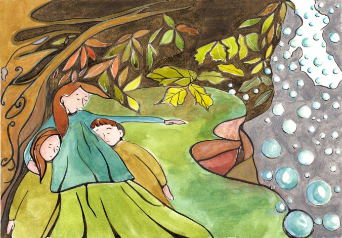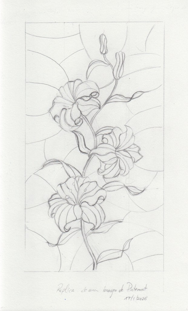 Es posible que lo de tomar la inspiración en las vidrieras, o que haya podido apoyarme en las ideas del dibujo neurográfico, apenas llegue a percibirse en estos dibujos, pero eso ya es tema de cada cuál, pues entra dentro de la intuición y de la experiencia personal. Quizá se vea un poco más en las imágenes que aparecen en el siguiente enlace Un día igual a los demás o en el dibujo de abajo, que llegó un mes más tarde que los anteriores: